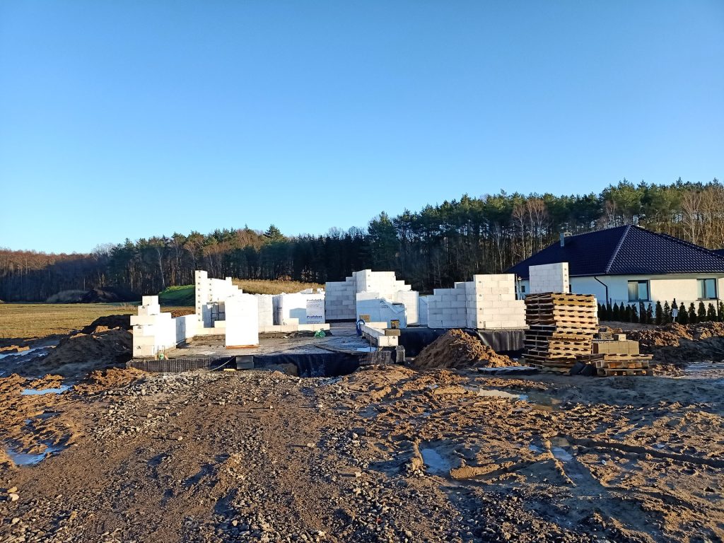 Krótki opis: Ława fundamentowa żelbetowa, ściana fundamentowa murowana z bloczków betonowych zwieńczona wieńcem żelbetowym, ściany nośne beton komórkowy Prefabet, stropodach żelbetowy, krycie dachu papą.